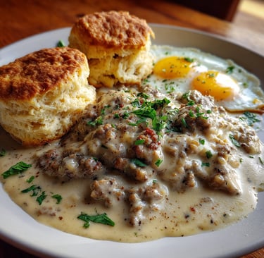 My Mother's Homemade Biscuits Sausage Gravy was one of my mother's favorite meal when she didn't have time to cook a larger meal. It's quick and easy. Give it a try for yourself!